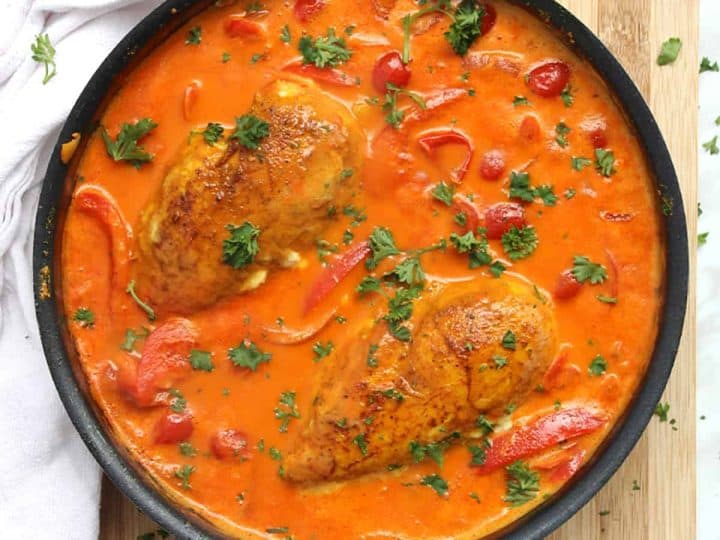 This Asian inspired creamy and rich chicken is vibrant in both flavor and color.
