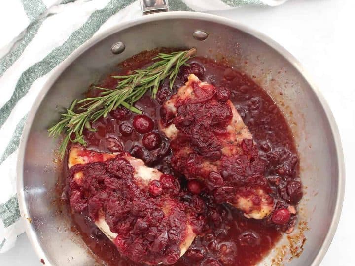 This simple recipe only requires 2 ingredients! Chicken breasts are baked with cranberry sauce for a sweet and tangy dinner.
