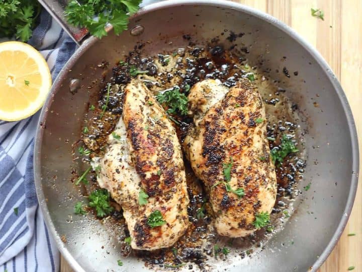 Marinated with lemon and oregano, these chicken breasts are fresh and flavorful and are ready to serve in minutes.