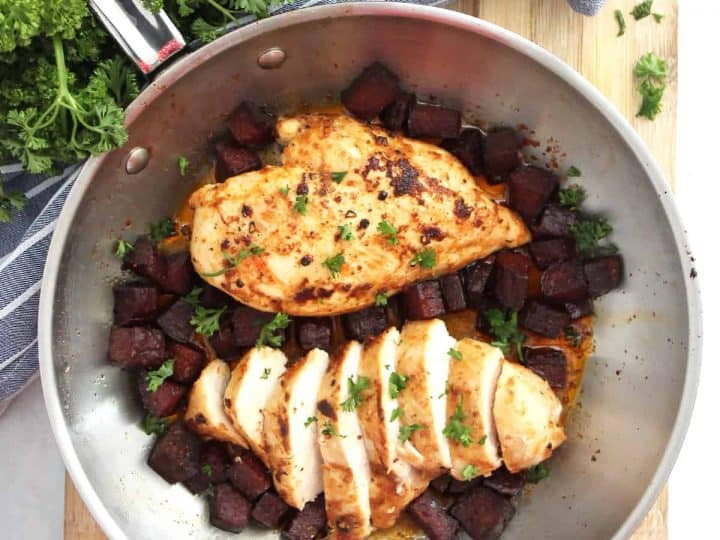 Add some spice and flavor to your meals with this super easy one pan chicken skillet recipe. Simple to make, this chorizo chicken is ready to serve in around 30 minutes, and you just need a few simple ingredients.