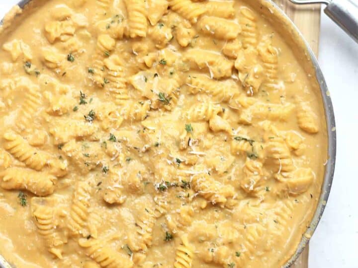 This quick and easy pasta sauce is a tasty way to make the most of canned pumpkin puree. This creamy pumpkin pasta sauce is flavored with blue cheese and sage for a simple and delicious family weeknight meal.