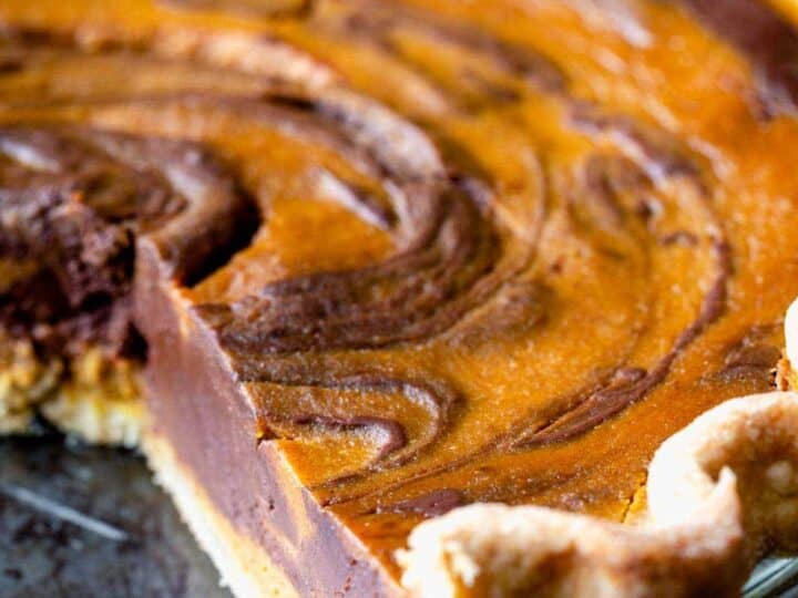 This Chocolate Swirl Pumpkin Pie will be your family’s new Thanksgiving tradition! It is made with a rich chocolate swirl and creamy spiced pumpkin pie in a homemade whole-wheat crust!